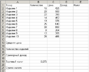 На Листе1 в левой верхней части листа заполните таблицу данными так, как приведено на рис. 4. Верхняя левая ячейка таблицы соответствует ячейке А1.