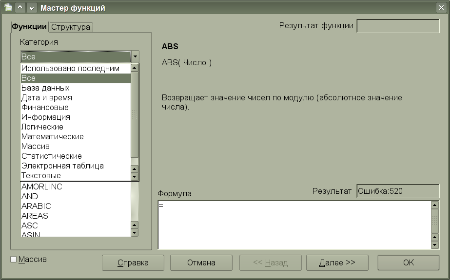 Все функции OOo Calc имеют аргументы (данные внутри круглых скобок). В зависимости от того, какие аргументы используются, различают следующие типы функций.