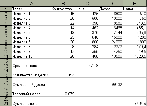 Используя соответствующие функции, рассчитайте значения суммарного дохода и суммы налога.