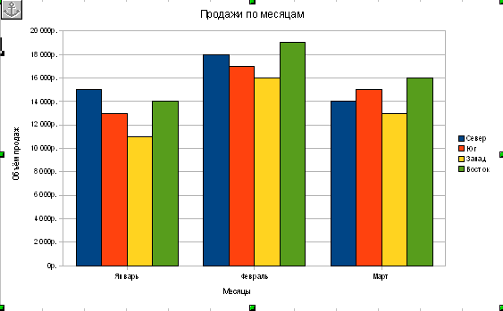 Активизируйте диаграмму, щелкнув на свободном поле диаграммы указателем мыши. При этом вокруг диаграммы появится черная рамка с маркерами рис. 9.