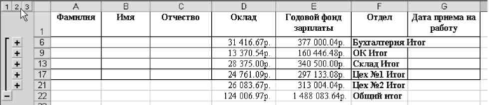 В списке Добавить итоги по укажите поля Оклад и Годовой фонд зарплаты – по этим полям будут подводиться итоги.