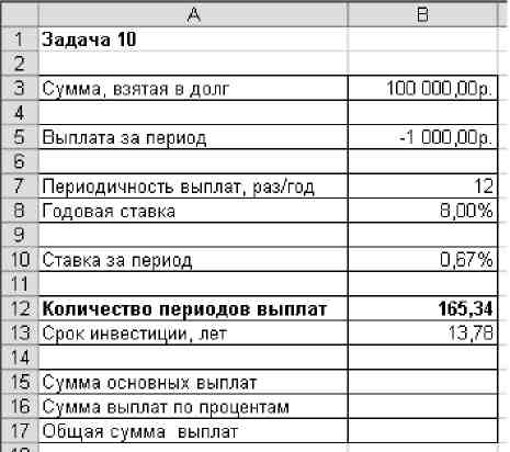 Решение этой задачи требует оценить текущую стоимость ряда платежей и единовременной выплаты. Для определения текущей стоимости вложения используется функция PV, в которой будут одновременно задействованы аргументы Бс и Плт.