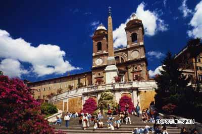 Городделится на две части: внутренний город и охватывающий его внешний, включая пригороды. Исторический центр Рима - небольшая территория на левом берегу Тибра, где сосредоточены практически все памятники великой римской истории. Главные достопримечательности: Пантеон Марка Агриппы (27 г. до н. э.), Колизей, известный также как амфитеатр Флавия, многочисленные триумфальные арки, знаменитые римские бани (Термы), великолепные фонтаны, лучшие среди которых - фонтан Треви и фонтан Бернини. Но главное достояние Рима - его прекрасные величественные церкви (в городе их больше 400), среди которых выделяется собор Св. Петра, находящийся на территории Ватикана, резиденции папы.Милан