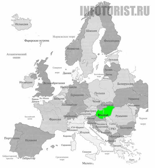 Венгрия, государство в Центральной Европе, граничит с Австрией, Словакией, Украиной, Румынией, Югославией, Хорватией и Словенией. Поверхность преимущественно равнинная, лишь на севере есть невысокие горы.