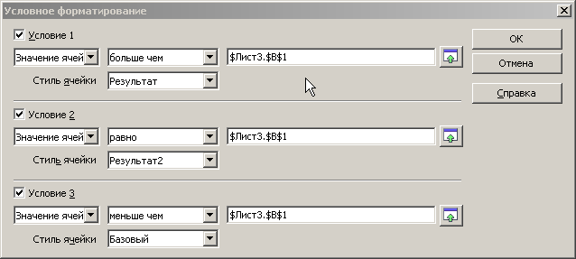 Применение таких элементов формата ячейки, как свойства шрифта, наличие границы и цвет заливки ячеек, можно поставить в зависимость от ряда условий, например, пока значения в этих ячейках не достигнут некоторых контрольных значений. Для этого в OpenOffice Calc предусмотрено средство Условное форматирование данных.
