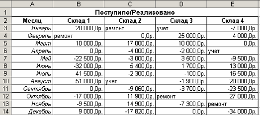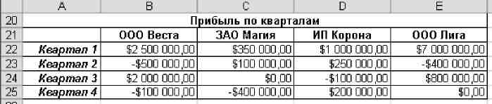 При отсутствии исходного файла на Листе6 создайте таблицу табл. 13. Левая верхняя ячейка таблицы соответствует ячейке А20.