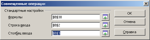 имеются два набора данных для двух ячеек (две переменные), на которые ссылается одна формула. Создаваемая в этом случае таблица называется Совмещённые операции с двумя входами.