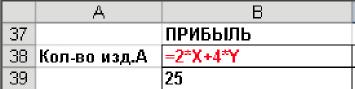 В таблице выделите значение прибыли, соответствующее текущим параметрам значений количества изделий