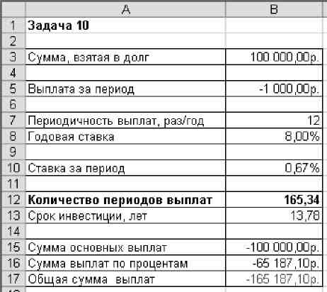 Решение этой задачи требует оценить текущую стоимость ряда платежей и единовременной выплаты. Для определения текущей стоимости вложения используется функция PV, в которой будут одновременно задействованы аргументы Бс и Плт.