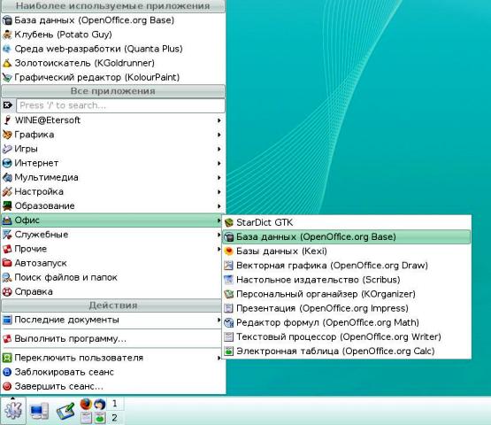 Откройте приложение OpenOffice.org. Base (KDE/Офис/OpenOffice.org. Base ) (см.рисунок)