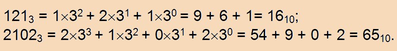 Для того чтобы перевести число в десятичную систему счисления, необходимо также представить его в виде суммы произведений составляющих его цифр на соответствующие степени основания системы: