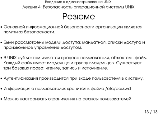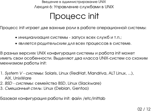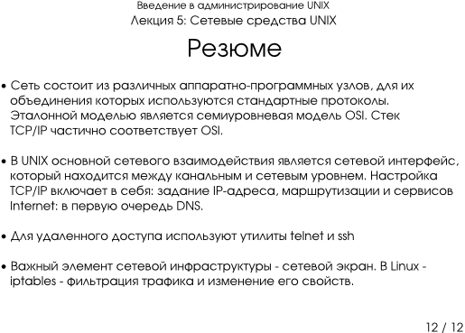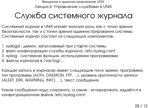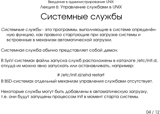 Введение в администрирование UNIX-подобных систем в виде набора лекций и практических занятий.