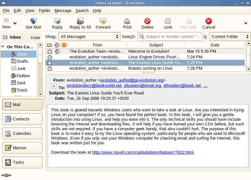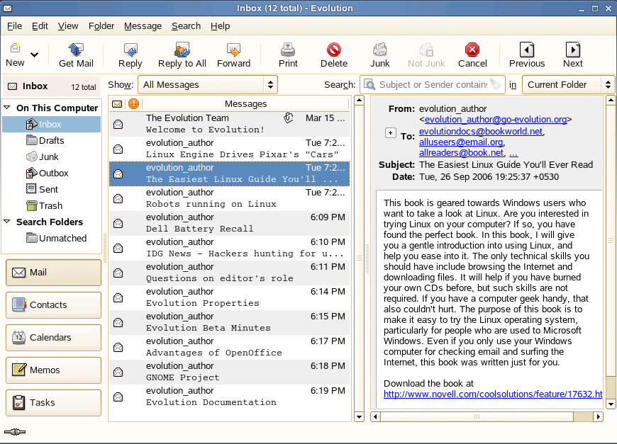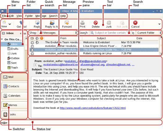 Evolution легко выполняет задачи хранения, организации и восстановления вашей личной информации, так что вы можете работать и связываться с другими людьми более эффективно. Это высоко развитая программа для групповой работы, неотъемлемая часть подсоединённого к Интернет рабочему столу.