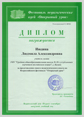 "	Диплом первой степени отдела образования Вахитовского района управления образования министерства образования и науки РТ в г. Казани за первое место в районном конкурсе "Использование высоких технологий в учебно-воспитательном процессе" 2006 г.