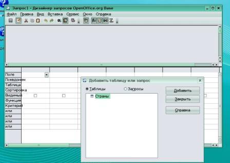 Добавьте таблицу «Страны», закройте окно (см.рисунок)