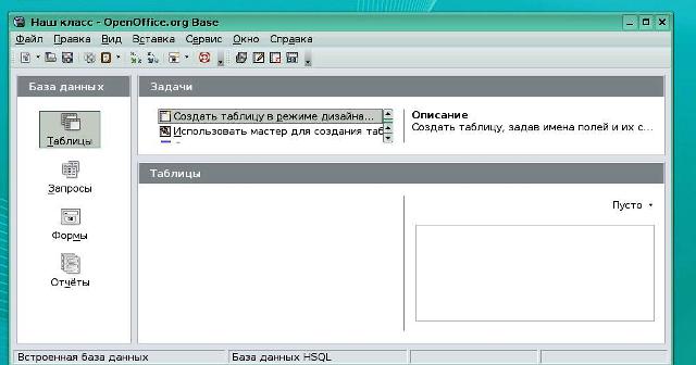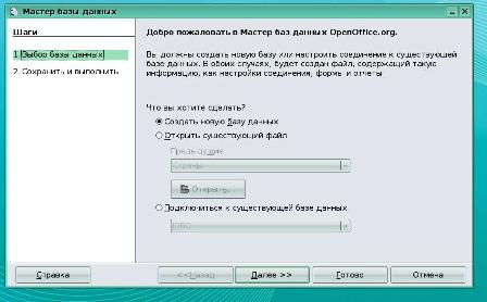Откройте приложение OpenOffice.org. Base (KDE/Офис/OpenOffice.org. Base ) (см.рисунок)