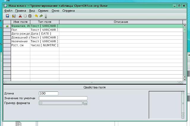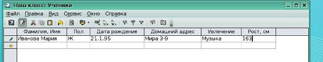 Создайте базу данных "Наш класс". Отразите в ней сведения об учащихся Вашей учебной группы.