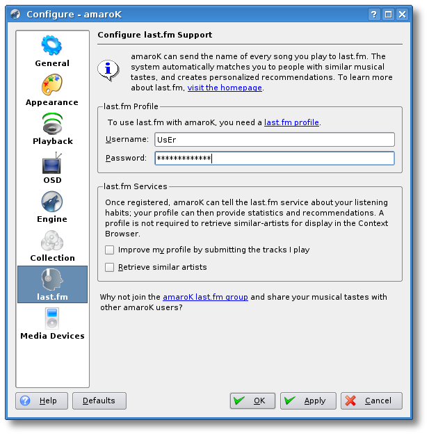 Зарегистрируйтесь в системе Audioscrobbler, если вы ещё не сделали этого.
