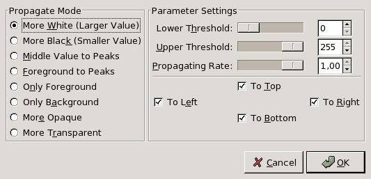 Foreground to Peaks: The propagated areas will be filled with the foreground color of the toolbox.